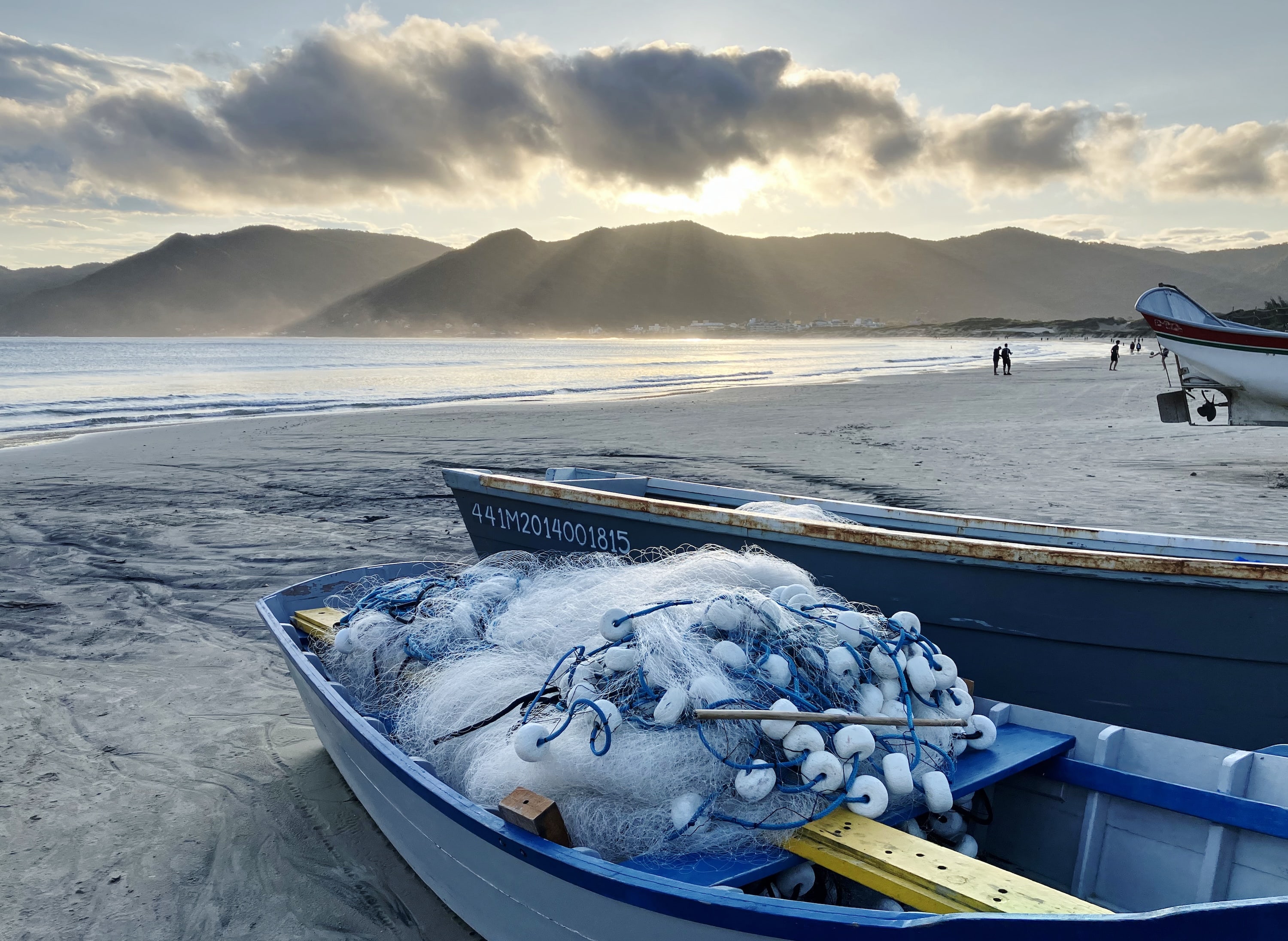 The South is the most untouched part of the island of Santa Catarina, very different in mood from the busy North and Centre. Coming to the South can feel a little bit like arriving at the end of the world. Sparsely populated and not so developed yet. Fishing is an important part of everyday life here, and beach goers have to share the space with fishing boats and fishermen tending their nets.